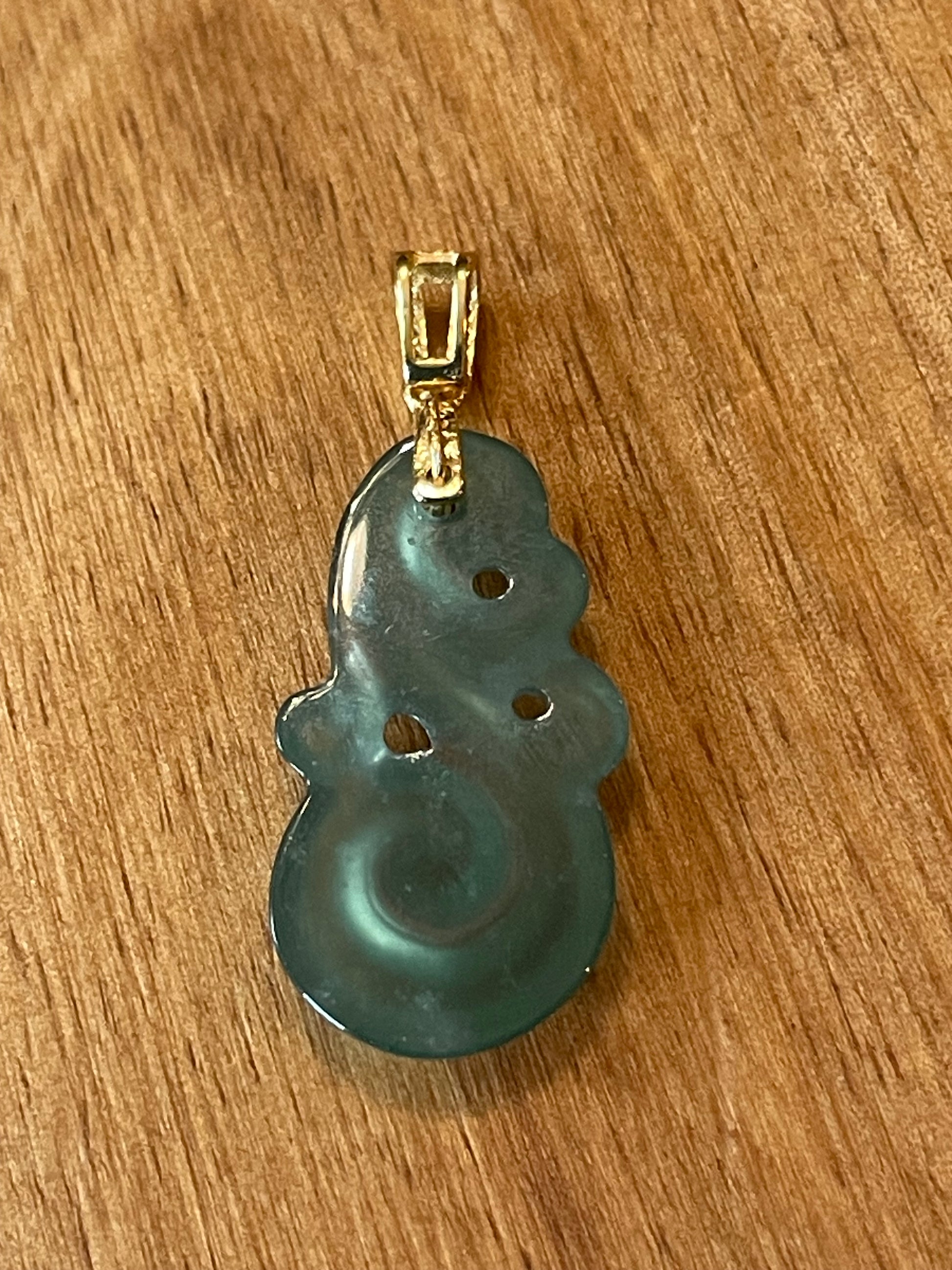 Natural Grade A Jadeite Yuyi Pendant Gold overlay silver necklace
