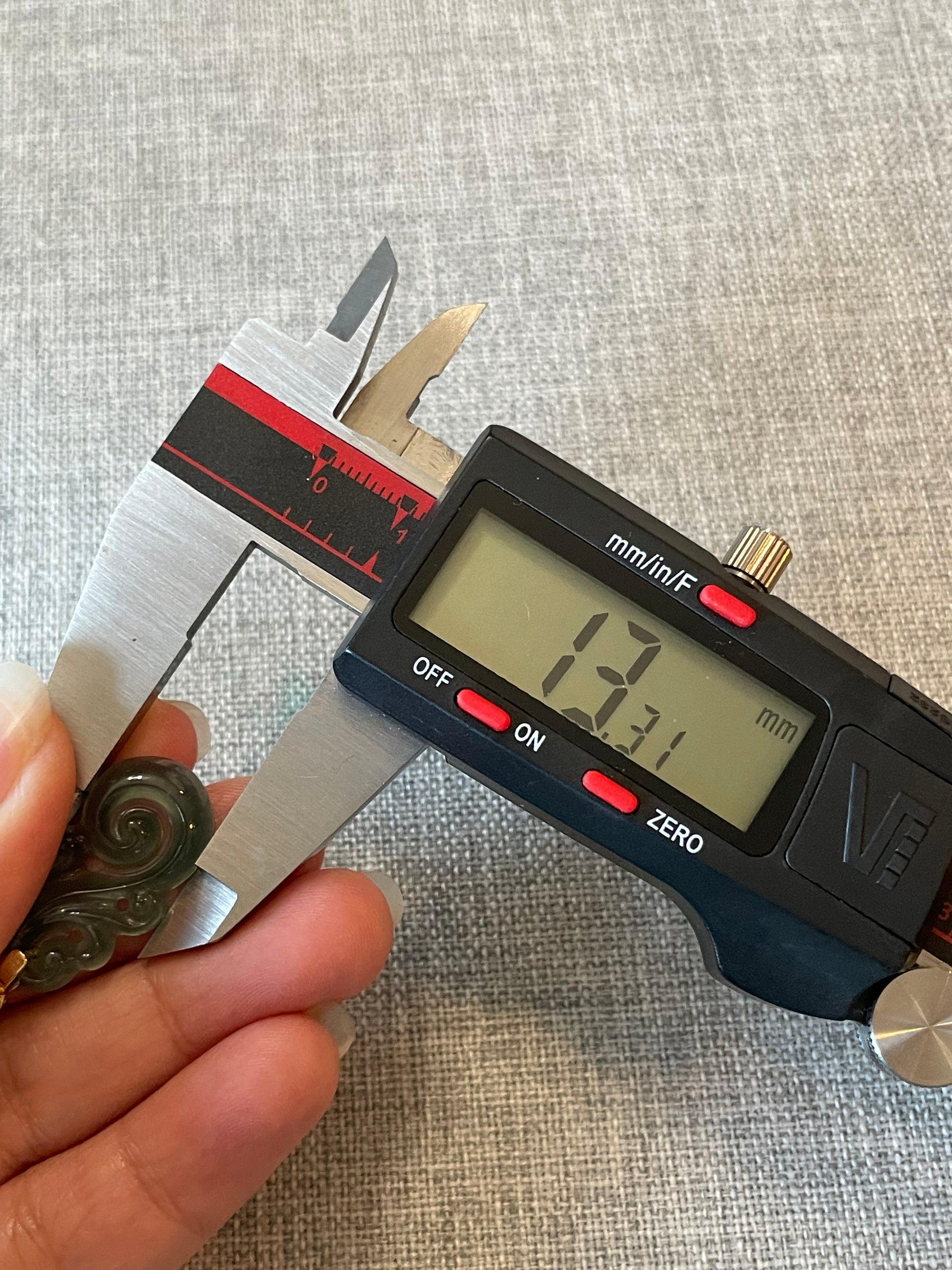 This pendant is translucent, and have some light blueish green color. It is hand carved on both sides. Height:26.7mm width:13.55mm thick:3.22mm