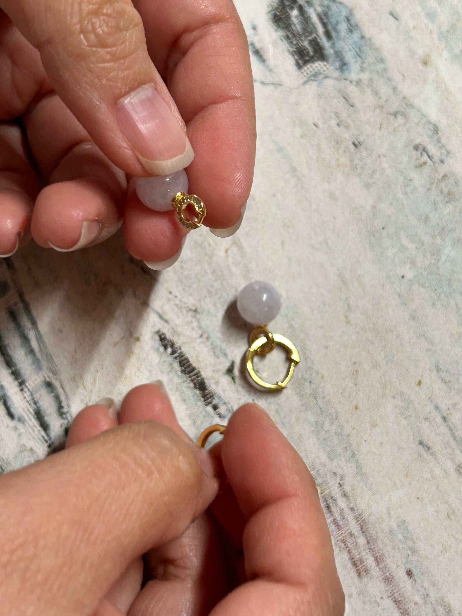 Natural Grade A light Lavender Burmese Jadeite beads Gold over 925 silver earring