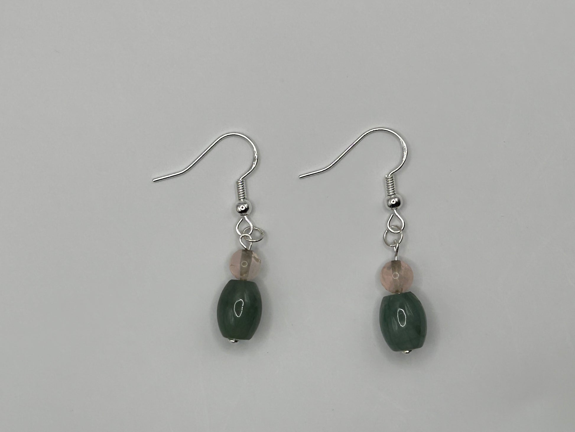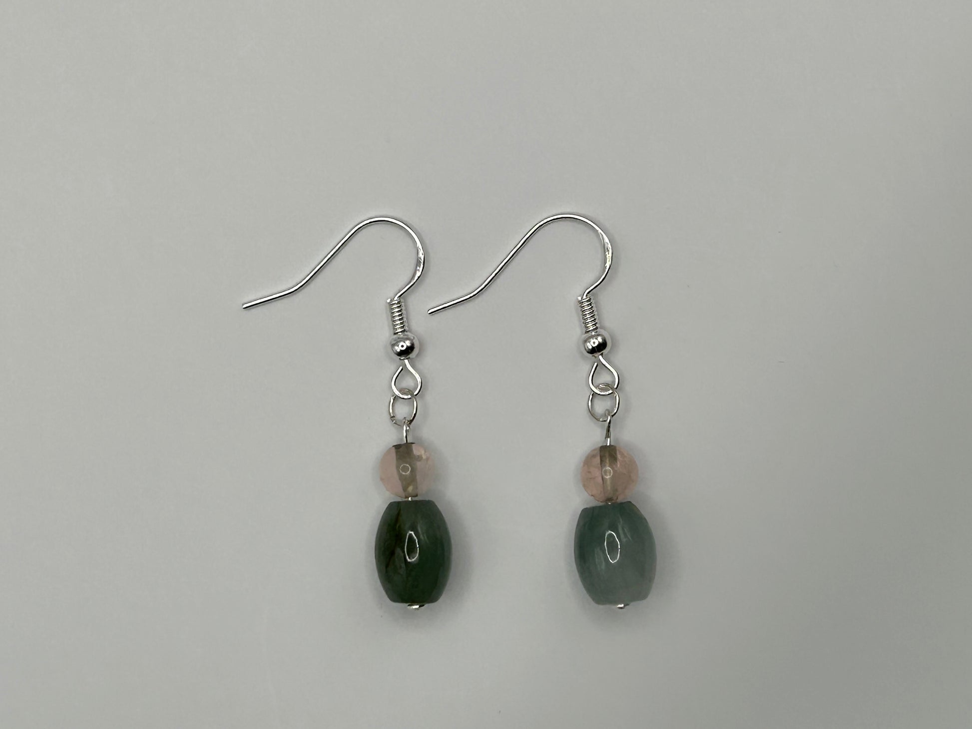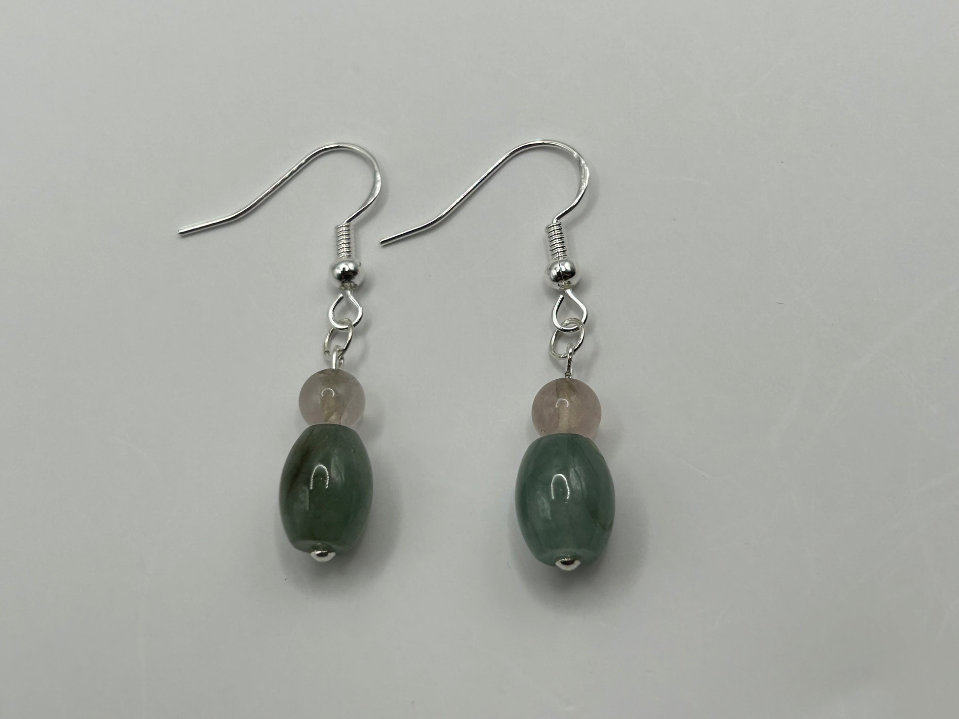 Natural Grade A Rose Quartz and Green Burmese Jadeite bead 925 silver earring