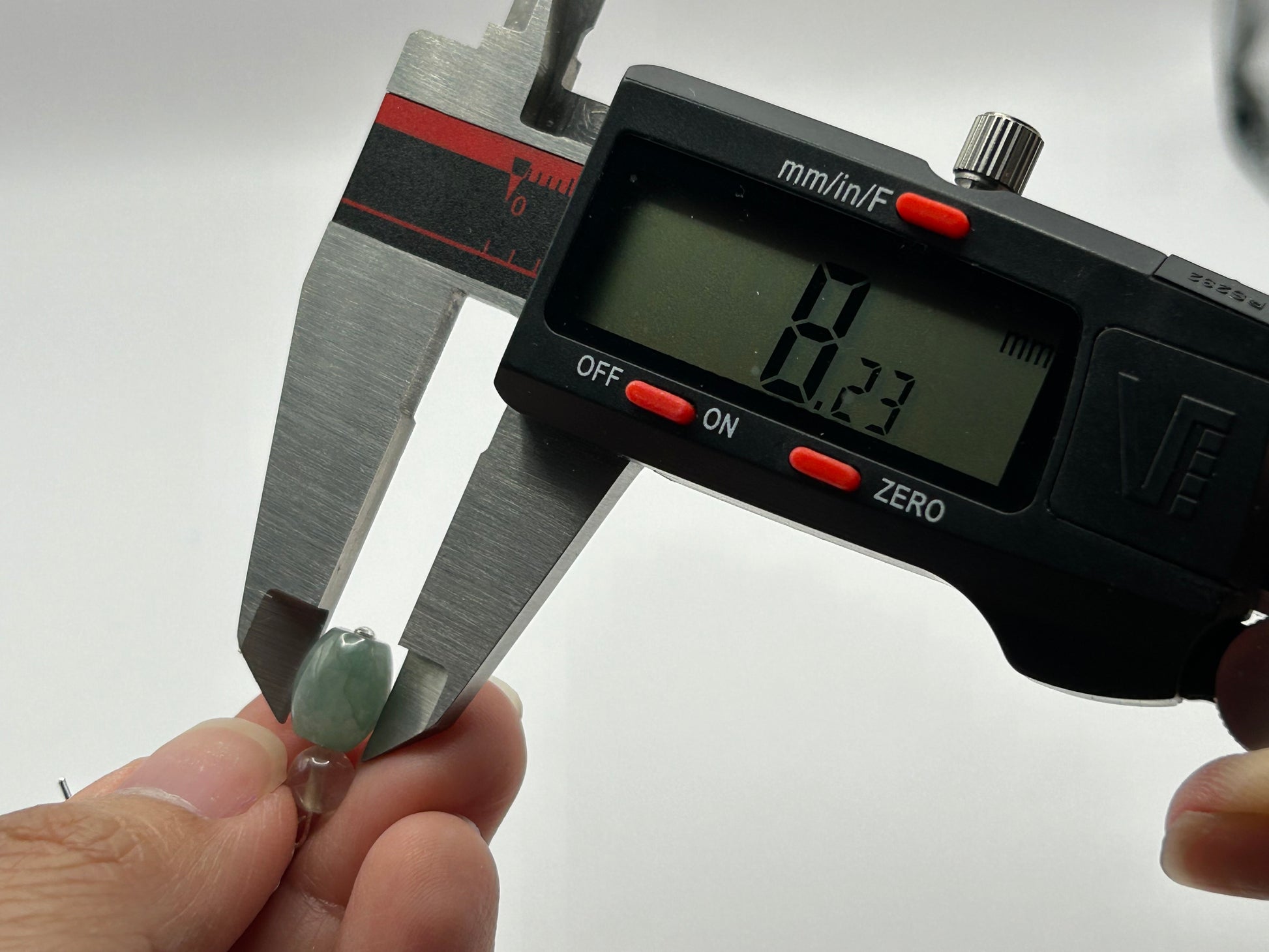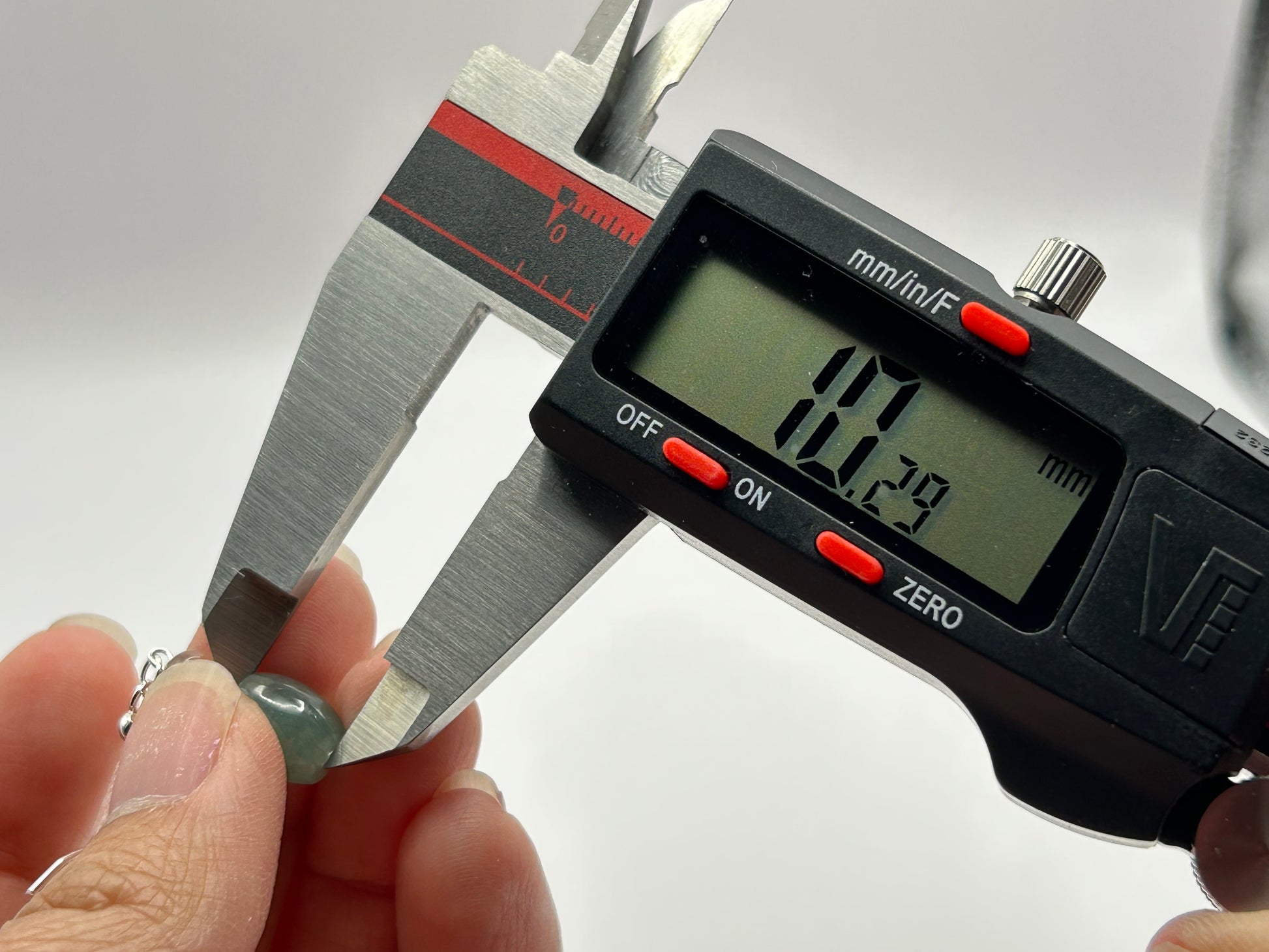 The Green bead jadeite size ,length:10.29mm, width:8.23mm.