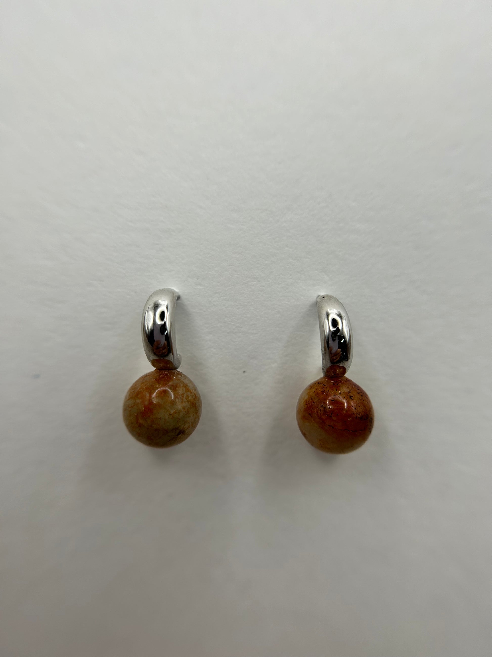 Natural Grade A Yellow Burmese Jadeite beads 925 silver earring
