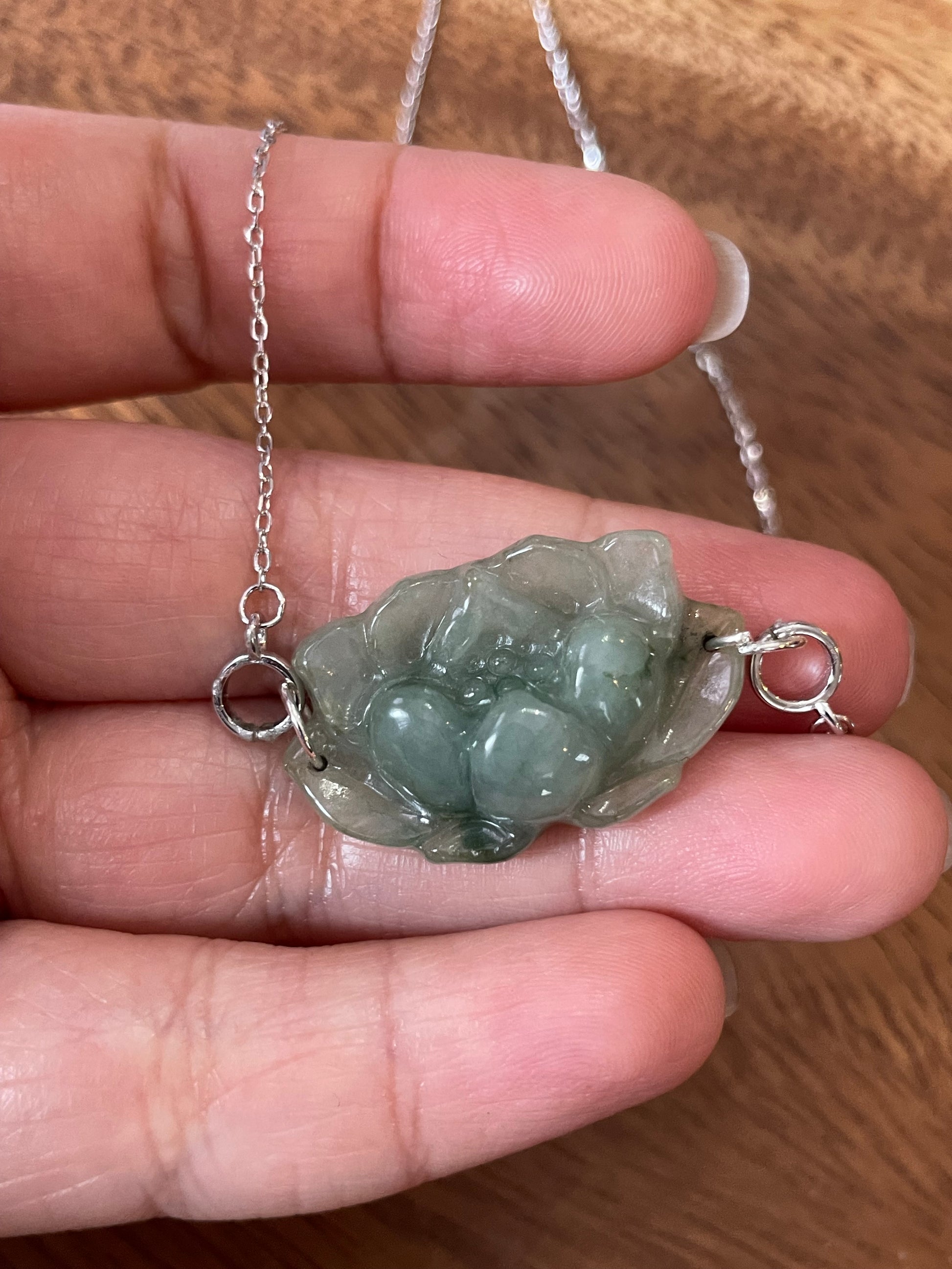Natural jadeite Green Water Lily Pendant Silver Necklace