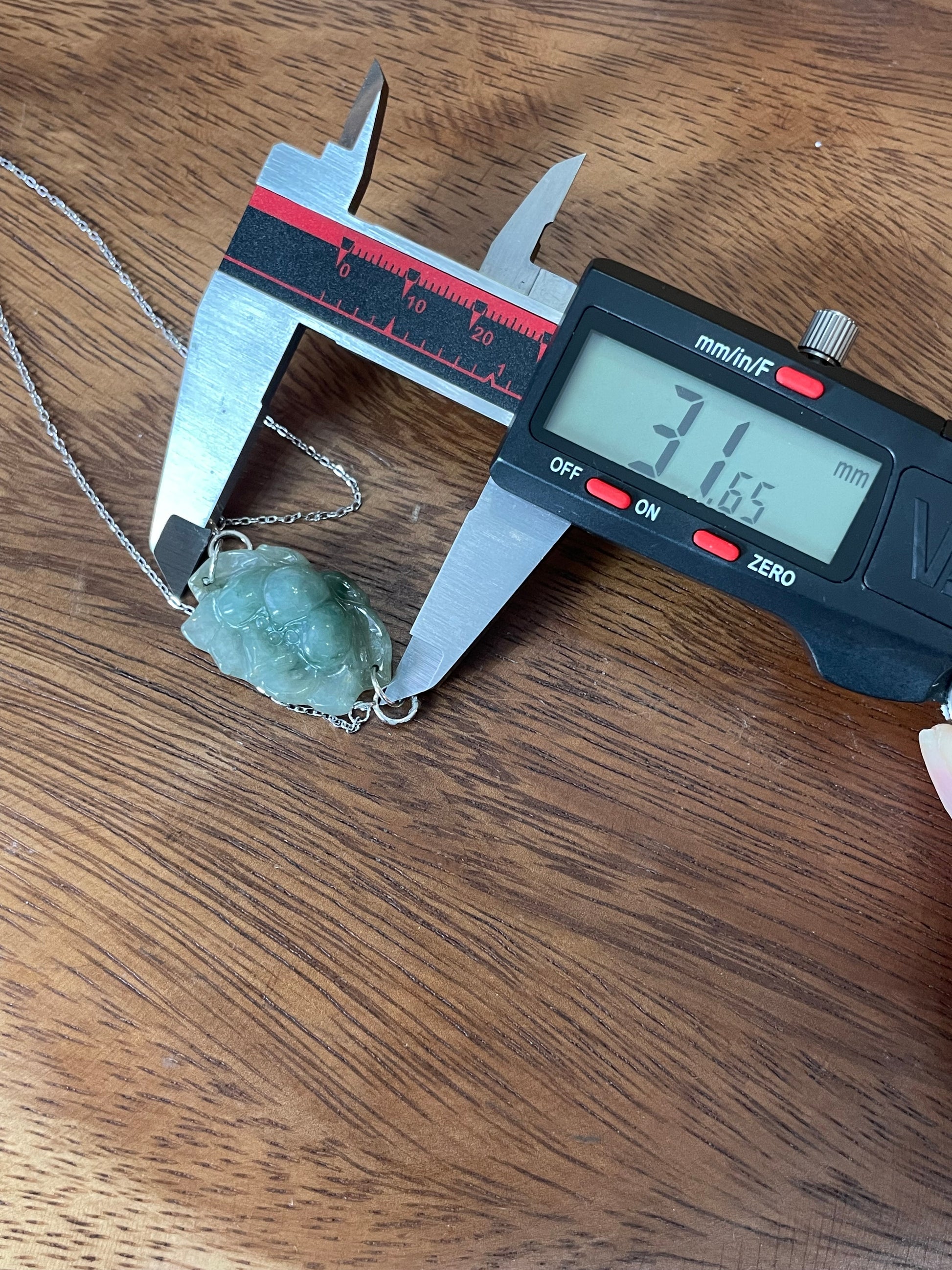 This pendant is translucent, and have some light blueish green color. The size of the pendant is Height:21.14mm thick:2.88mm