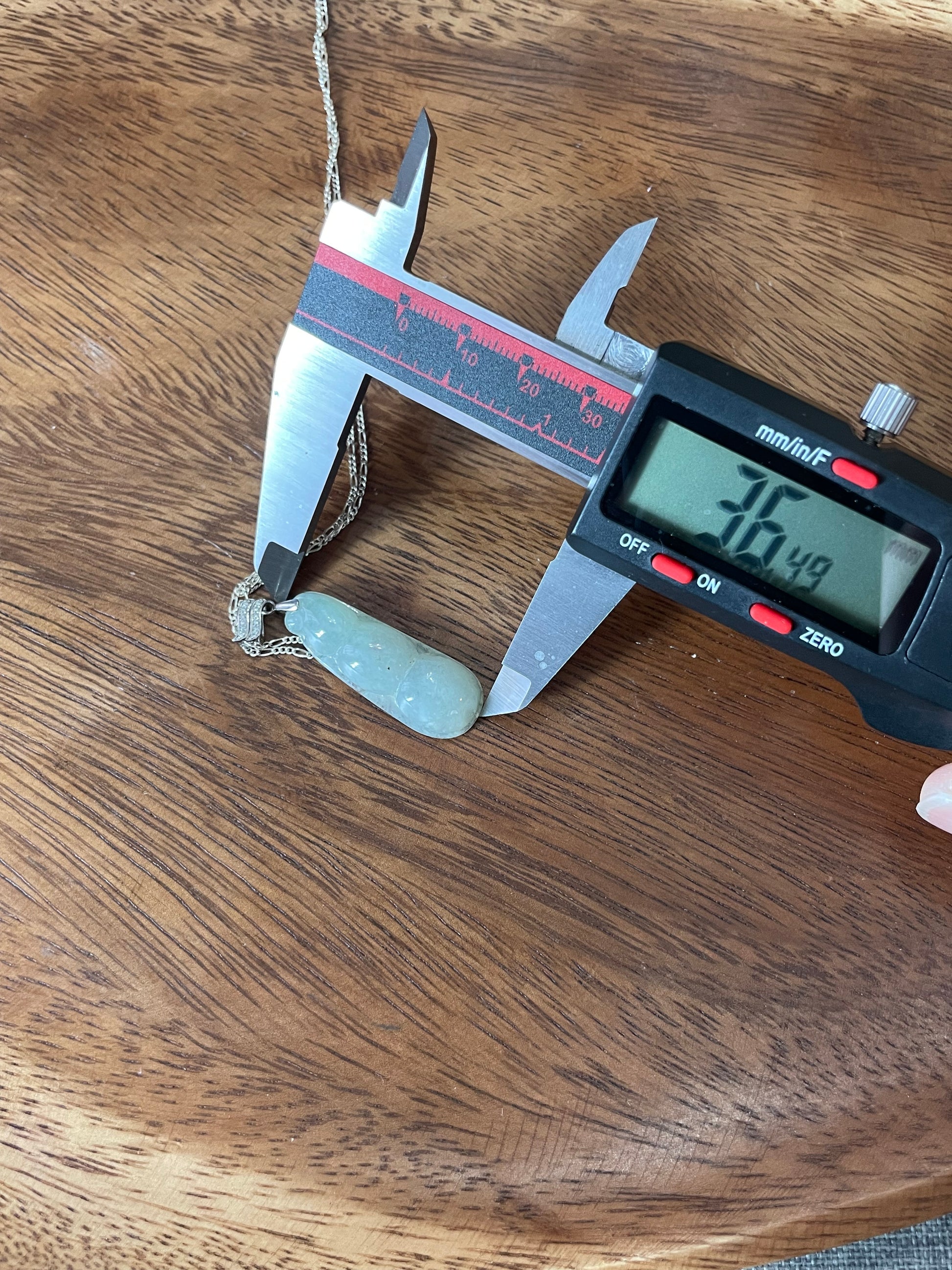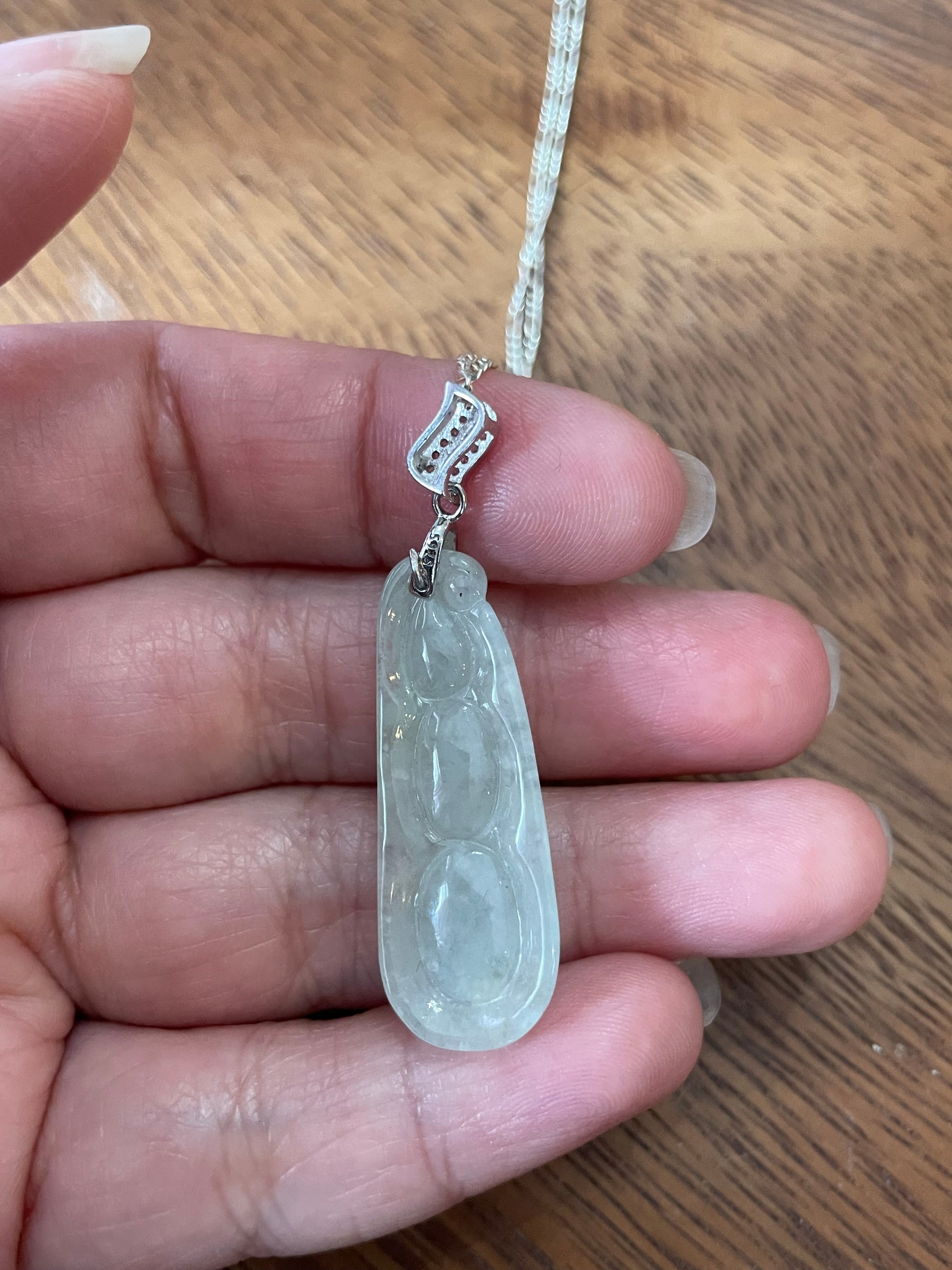 Natural White Jadeite Three Peas in a Pod Pendant, Sterling Silver necklace