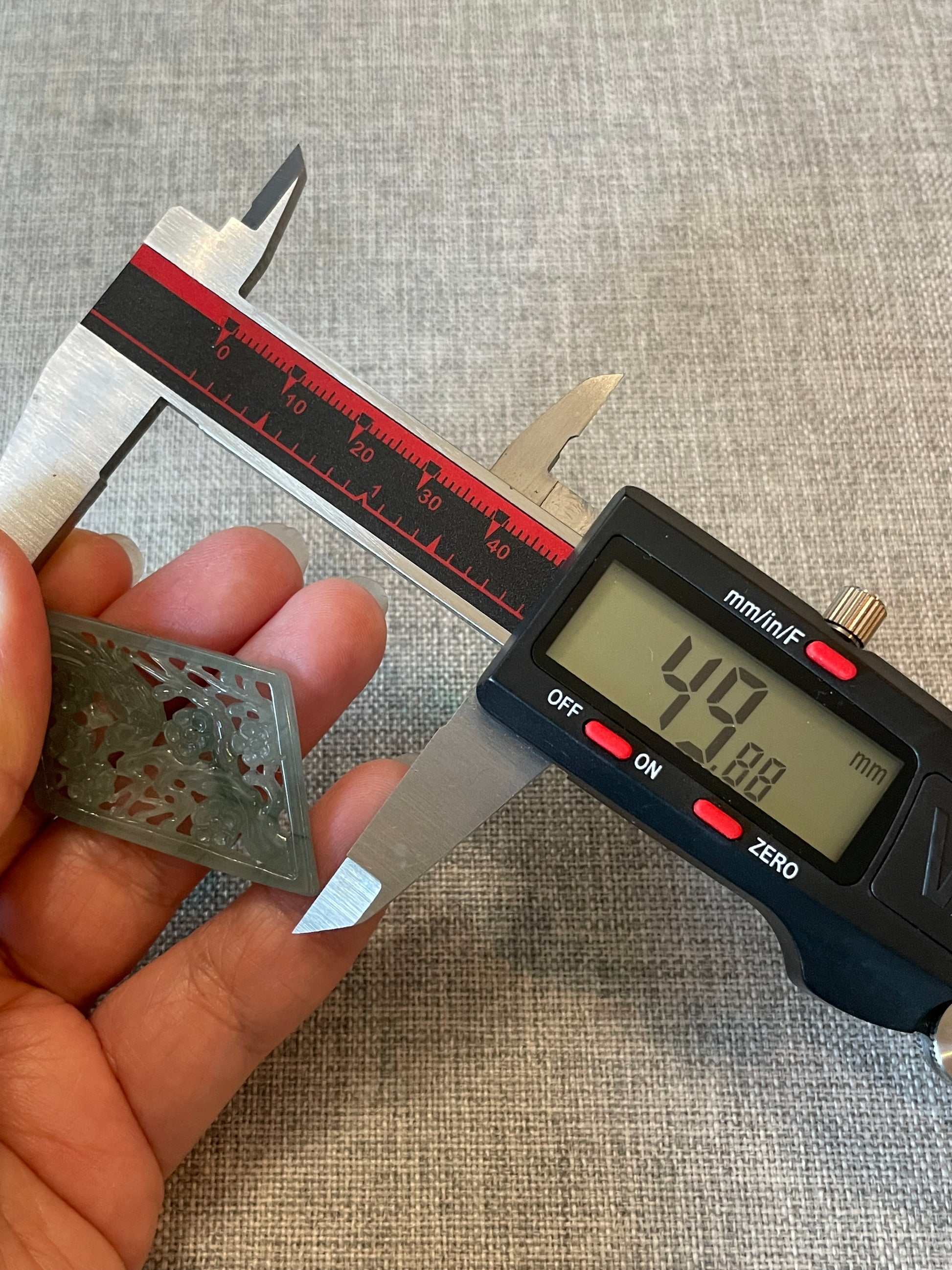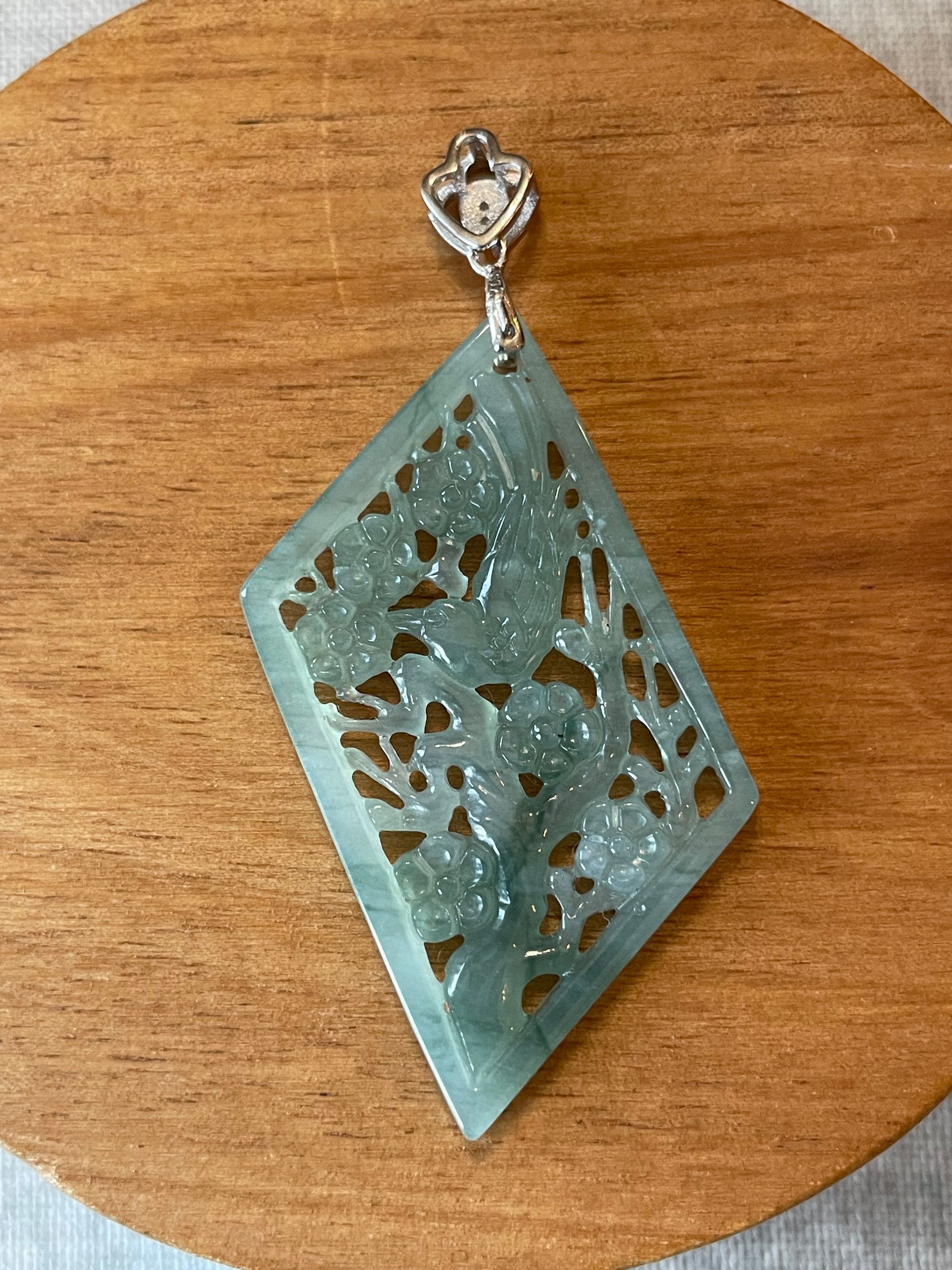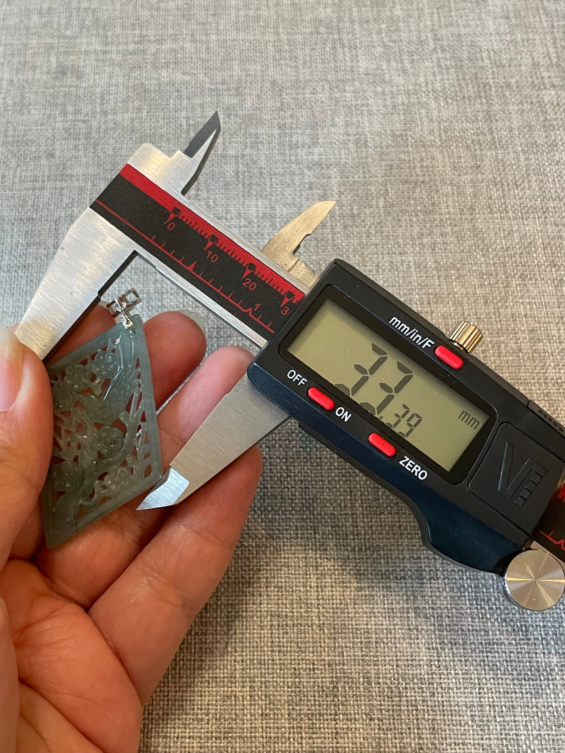 In Chinese culture, flower bloom will become rich, the sound of birds represent life and prosperous. It's both side carving.it’s a very special piece that can be worn casually and can be dress up. the piece is 49.88 height, 33.39mm width and 3.3mm thick.