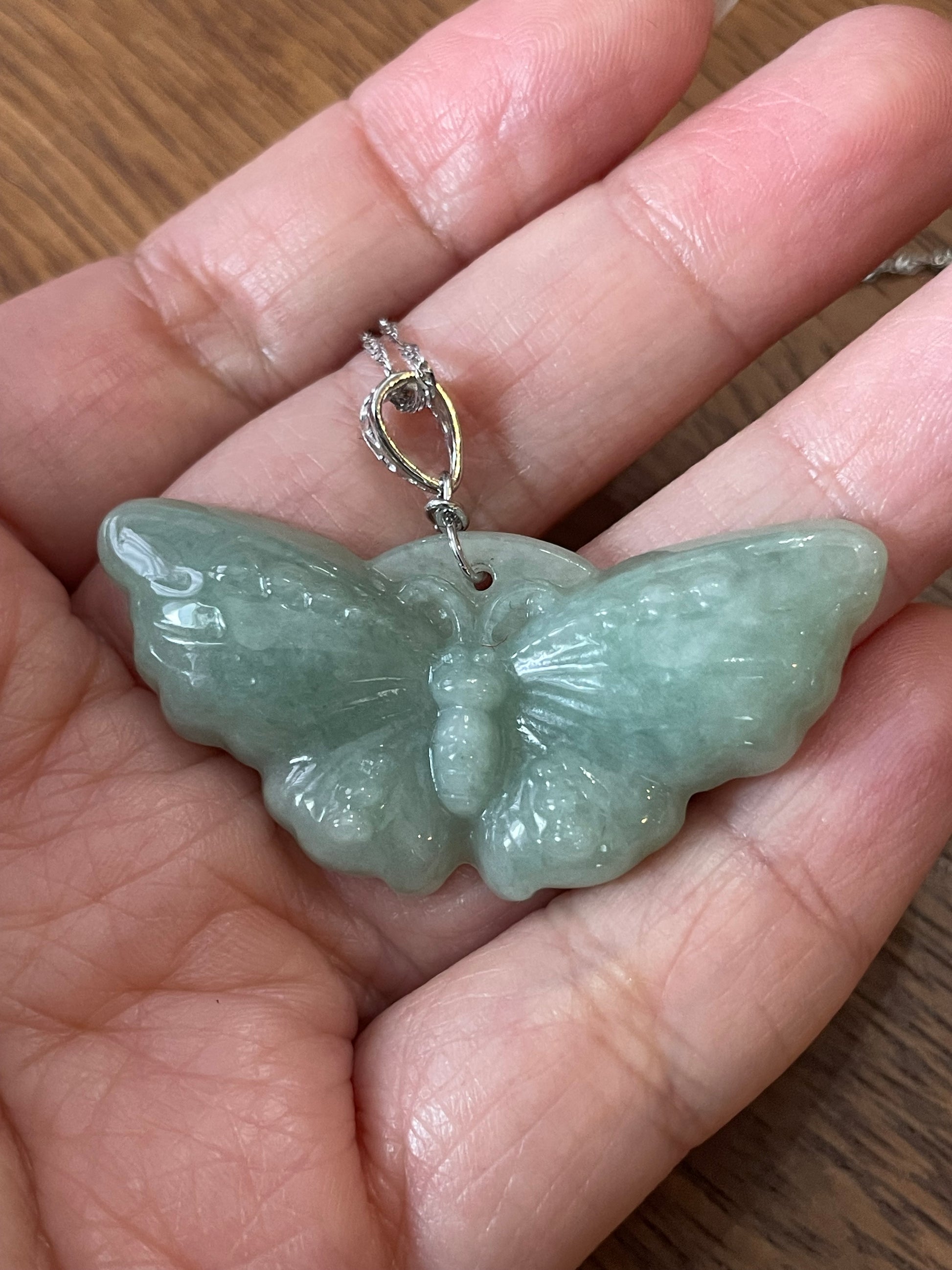 Natural Burma Jadeite green Butterfly silver necklace