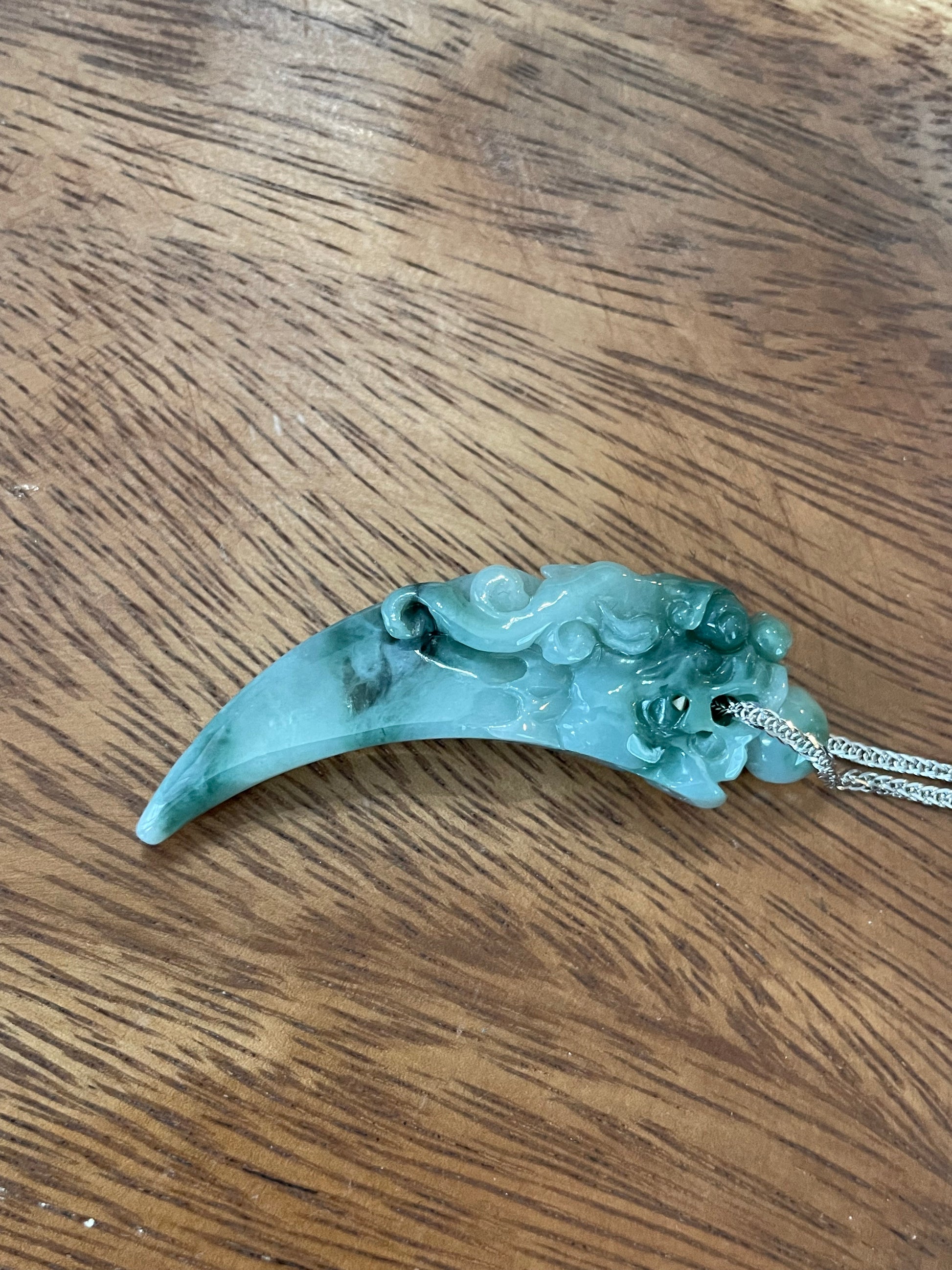 Nature Burma Jadeite Hand curved Dragon Teeth silver necklace