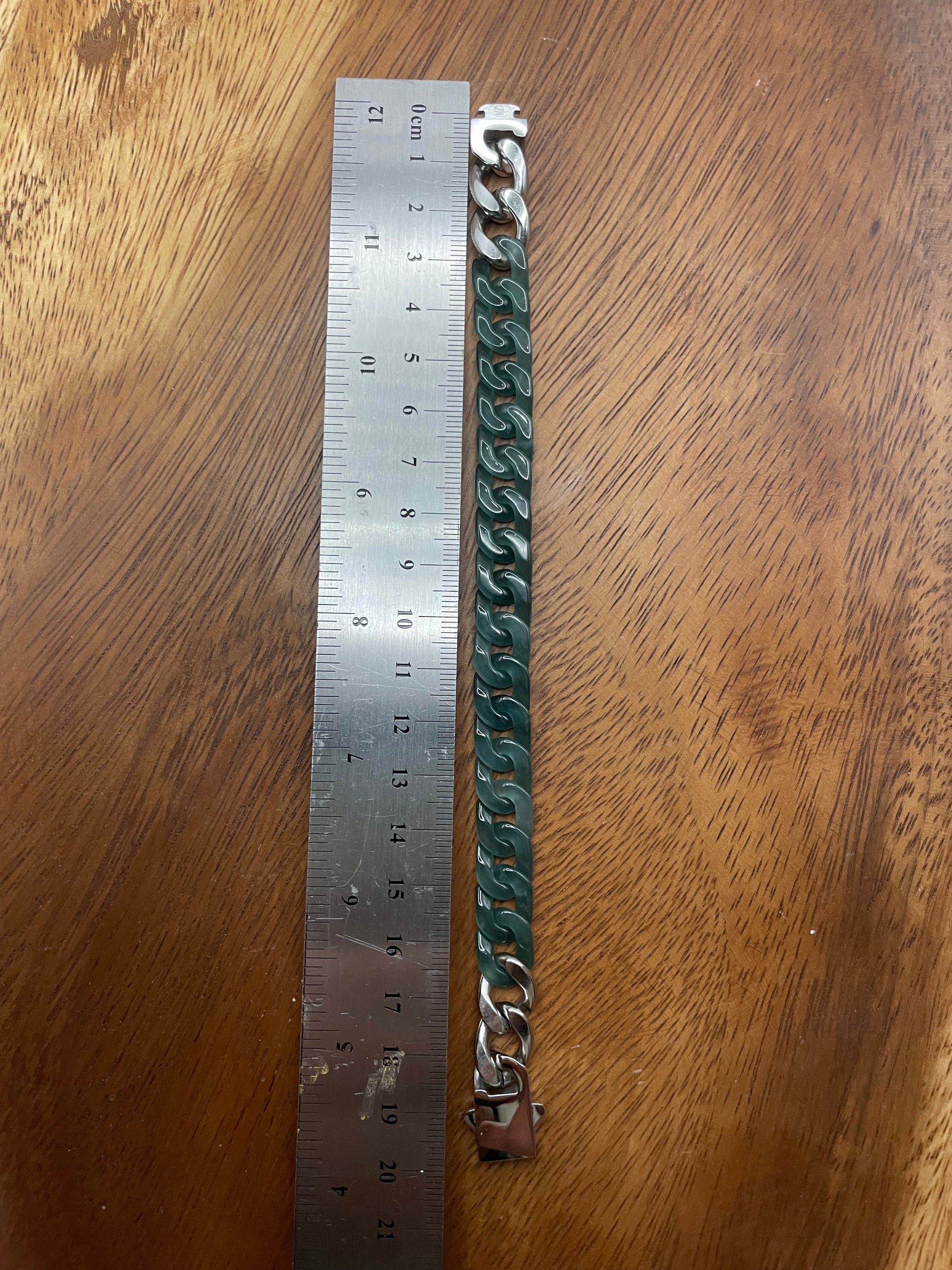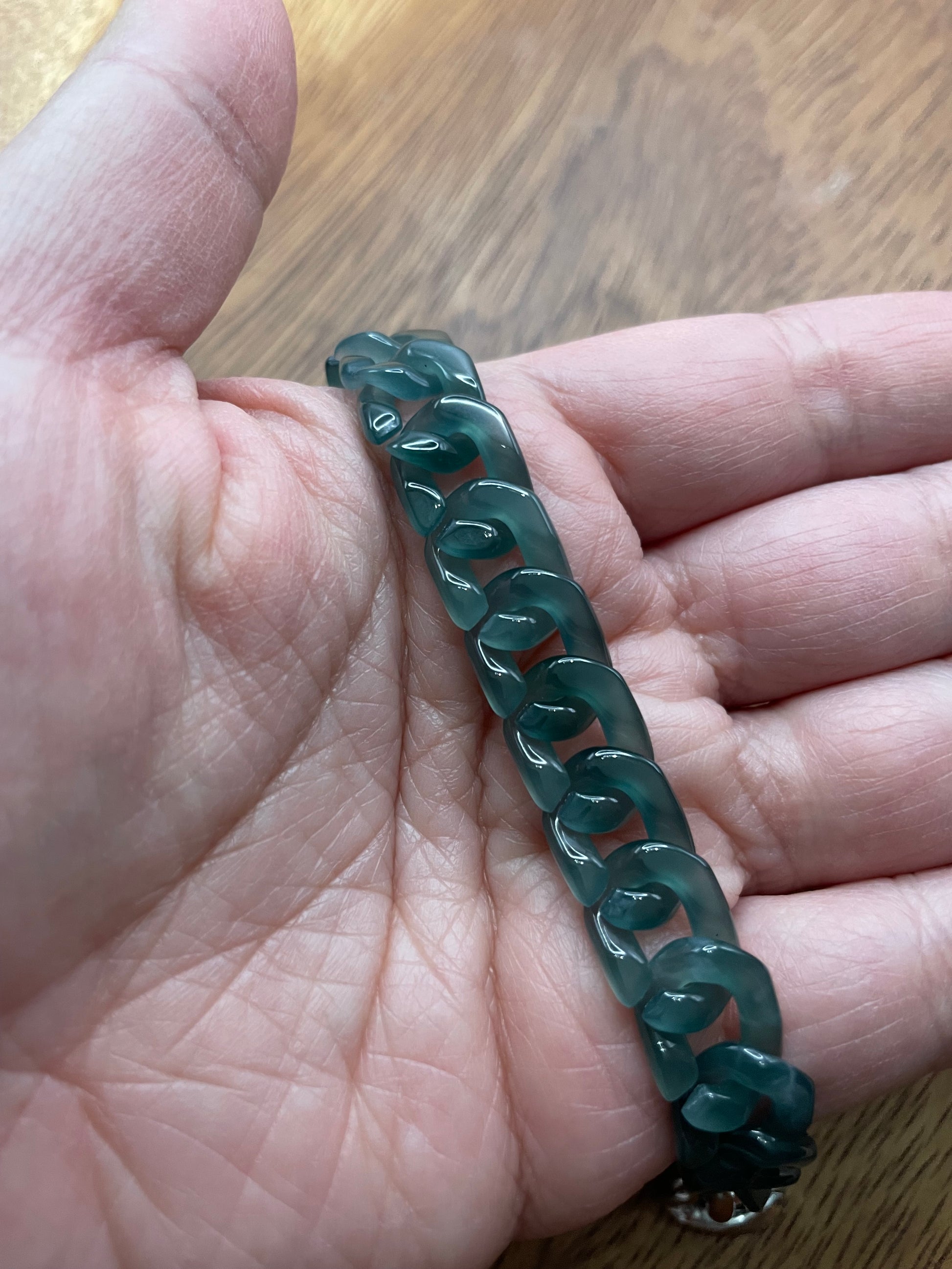 Icy green Guatemala green Jadeite Cuban link bracelet with stainless steel buckle. Genuine Type A jadeite. All natural non treated jade. This is a beautiful translucent piece. The bracelet is 8 inches long, but we can change the length of your size, this piece is perfect for any adult , or children.
