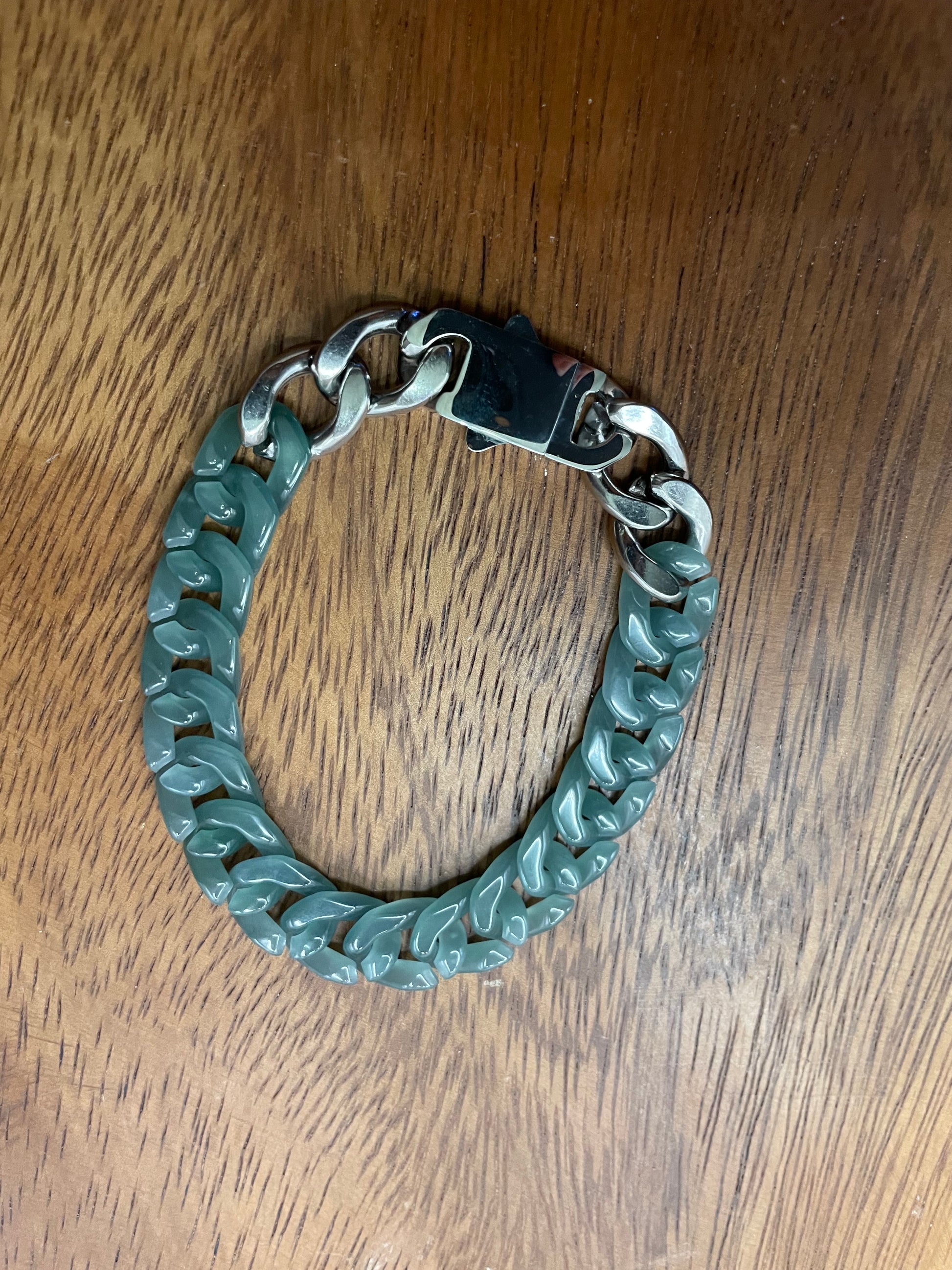 Icy green Guatemala green Jadeite Cuban link bracelet with stainless steel buckle. Genuine Type A jadeite. All natural non treated jade. This is a beautiful translucent piece. The bracelet is 8 inches long, but we can change the length of your size, this piece is perfect for any adult , or children.